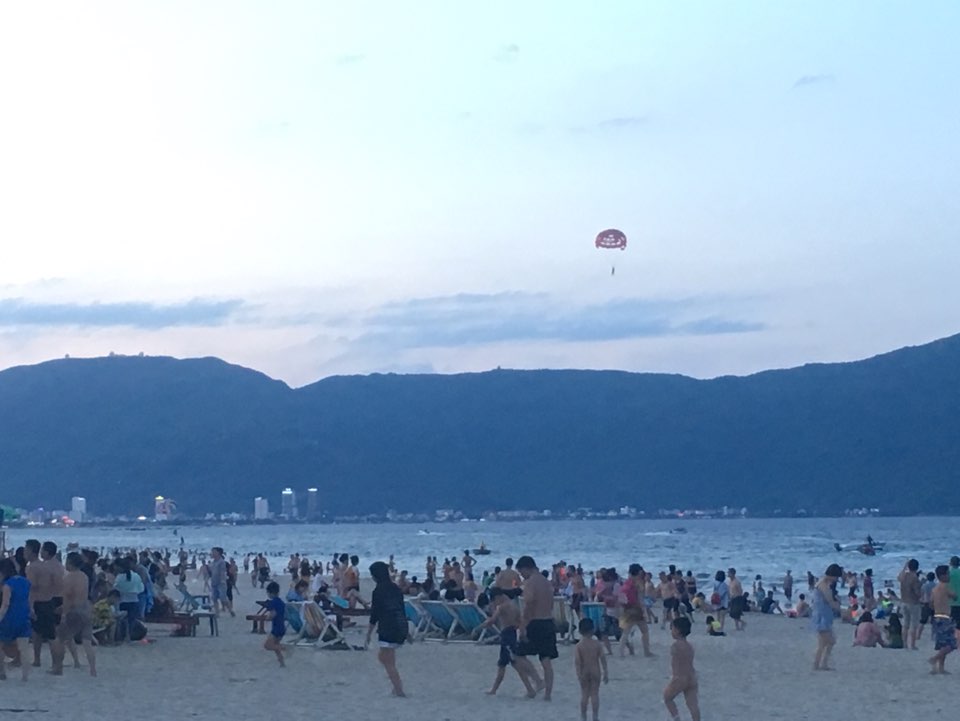 해변에 들어가도 할 게 별로 없었어요. 사람이 너무 많아서 물에 들어가기도 좀 그랬고 (물도 깨끗하지는 않았고..), 사진만 좀 찍고 경치만 보다가 왔습니다. 해변은 오히려 린응사에서 (산에 위치한 베트남 절) 바라볼 때가 훨씬 더 멋져 보였어요. 낮에 왔으면 파라솔을 하나 빌려서 음료라도 마셨으면 좀 더 운치가 있었을 수도 있었겠네요.